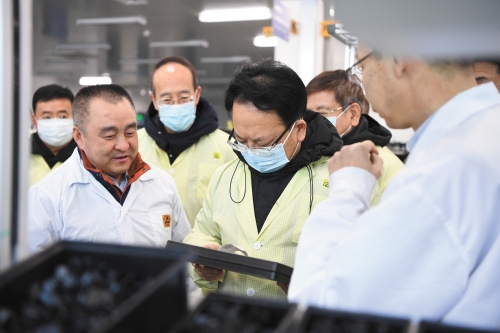 ?。保苍拢谷?,吉林省委書記景俊海到中國兵器工業(yè)集團(tuán)東北工業(yè)集團(tuán)有限公司,就深入貫徹黨的十九屆五中全會精神和習(xí)近平總書記視察吉林重要講話重要指示精神,全面落實(shí)省委十一屆八次全會精神,推動企業(yè)創(chuàng)新發(fā)展等情況進(jìn)行調(diào)研。吉林省委常委、副省長吳靖平,吉林省委常委、省委秘書長胡家福,吉林省委常委、長春市委書記王凱一同調(diào)研。  圖為景俊海等在東北工業(yè)集團(tuán)生產(chǎn)現(xiàn)場調(diào)研