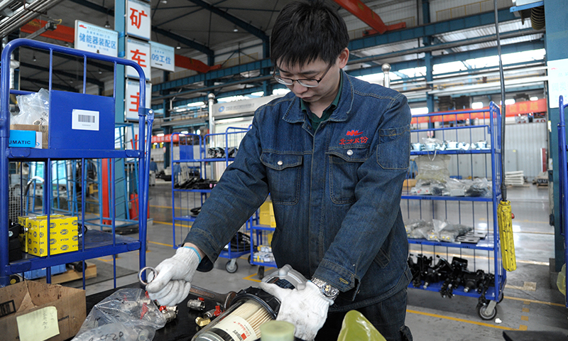 圖為北重集團北方股份一線員工趕制生產(chǎn)進度。