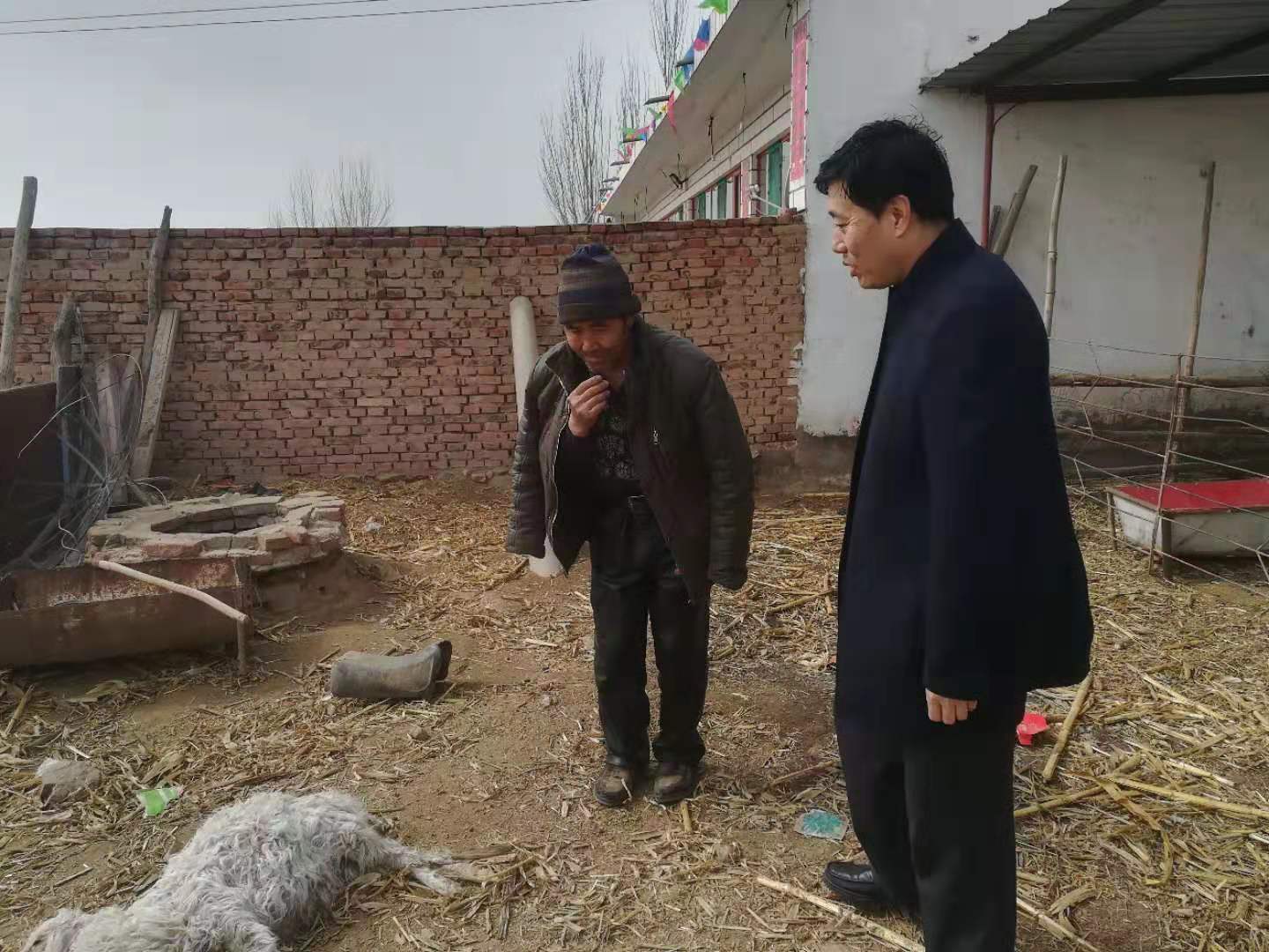 圖為郭建峰查看困難戶羊圈