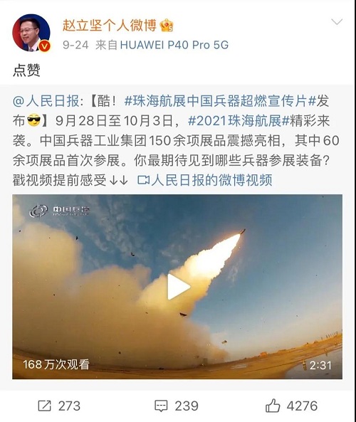 人民日報(bào)、新華社、中國日報(bào)、共青團(tuán)中央、國資小新、騰訊軍事、鳳凰軍事、新浪軍事等新媒體發(fā)布的集團(tuán)公司航展宣傳片等視頻作品燃爆全網(wǎng),閱讀量突破三千萬人次,得到外交部發(fā)言人趙立堅(jiān)轉(zhuǎn)載點(diǎn)贊。集團(tuán)公司微信、微博、抖音號、微信視頻號等新媒體宣傳片播放閱讀量超過400萬人次。同時(shí),央視新聞、新華社、中國之聲、央視軍事、央視新媒體、解放軍報(bào)、共青團(tuán)中央、國資小新、環(huán)球時(shí)報(bào)等多家媒體對集團(tuán)公司靜、動態(tài)展區(qū)進(jìn)行現(xiàn)場直播,在電視端、客戶端、微信視頻號、微博、B站、快手、抖音等平臺受到高度關(guān)注。著名軍事專家杜文龍、央視主持人顧國寧、央廣中國之聲主持人王藝等直播兵器館、動態(tài)表演區(qū)裝備。 《參考消息》、新華網(wǎng)、央廣網(wǎng)、中國日報(bào)、科技日報(bào)、解放軍報(bào)、人民網(wǎng)、中國新聞網(wǎng)、中國青年網(wǎng)、中國網(wǎng)、中工網(wǎng)、央視網(wǎng)、環(huán)球網(wǎng)、騰訊網(wǎng)、新浪網(wǎng)、鳳凰網(wǎng)、搜狐網(wǎng)、網(wǎng)易網(wǎng)、今日頭條等中央主流媒體和知名網(wǎng)絡(luò)媒體以及南方日報(bào)、廣東電視臺、北京電視臺、新京報(bào)、珠海傳媒集團(tuán)、深圳衛(wèi)視等省市媒體對集團(tuán)公司參展情況進(jìn)行了圖片、文字、視頻報(bào)道。 航展期間,備受關(guān)注的中國兵器館,參觀的觀眾絡(luò)繹不絕。 |
