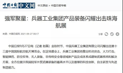 兵器工業(yè)集團(tuán)參展第十三屆中國航展受到社會廣泛關(guān)注 |