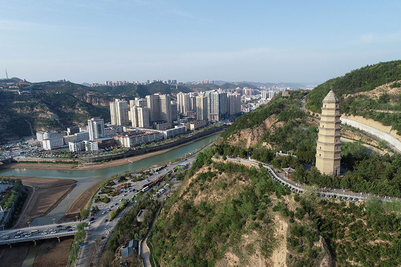 這是4月22日拍攝的延安市寶塔山(無(wú)人機(jī)照片)。新華社記者 張博文 攝
