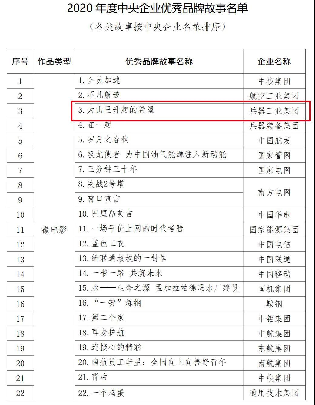 兵器工業(yè)集團(tuán)品牌建設(shè)案例入選2020年度100個(gè)國有企業(yè)品牌建設(shè)典型案例和100個(gè)優(yōu)秀品牌故事