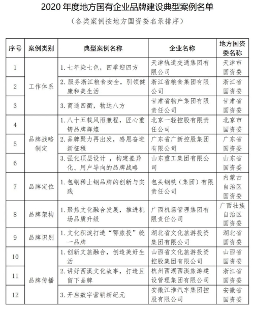 2020年度100個(gè)國有企業(yè)品牌建設(shè)典型案例和100個(gè)優(yōu)秀品牌故事,匯集企業(yè)優(yōu)秀經(jīng)驗(yàn)做法,豐富國企品牌資源池,促進(jìn)企業(yè)相互學(xué)習(xí)借鑒,加快提高品牌管理專業(yè)化水平。