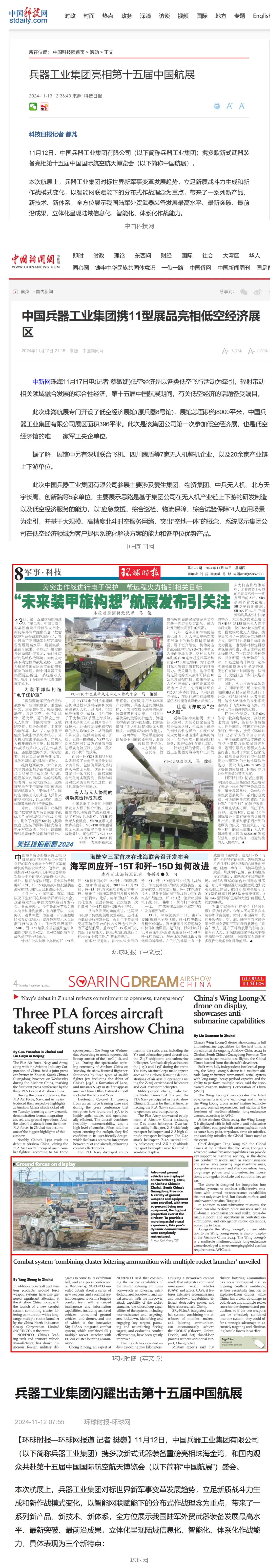 11月12日至17日,第十五屆中國國際航空航天博覽會在廣東省珠海市舉行,中國兵器工業(yè)集團(tuán)有限公司突出數(shù)智賦能軍貿(mào)合成旅作戰(zhàn)體系,帶來了一系列新產(chǎn)品、新技術(shù)、新體系,全方位展示我國陸軍外貿(mào)武器裝備發(fā)展最高水平、最新突破、最前沿成果,立體化呈現(xiàn)陸域信息化、智能化、體系化作戰(zhàn)能力,受到了全社會廣泛關(guān)注。航展期間,央視綜合頻道《新聞聯(lián)播》、央視新聞頻道《新聞直播間》《長空鵬程》報道兵器工業(yè)集團(tuán)參展情況,重點(diǎn)介紹了VT4A1主戰(zhàn)坦克、輪式裝甲火炮、新一代陸域指控信息系統(tǒng)、無人戰(zhàn)車、民用無人運(yùn)輸機(jī)及地面裝備演示有關(guān)內(nèi)容。央視新聞推出航展直播節(jié)目《藍(lán)天之約》,邀請兵器工業(yè)集團(tuán)嘉賓對參展情況、裝備動態(tài)演示作了講解。